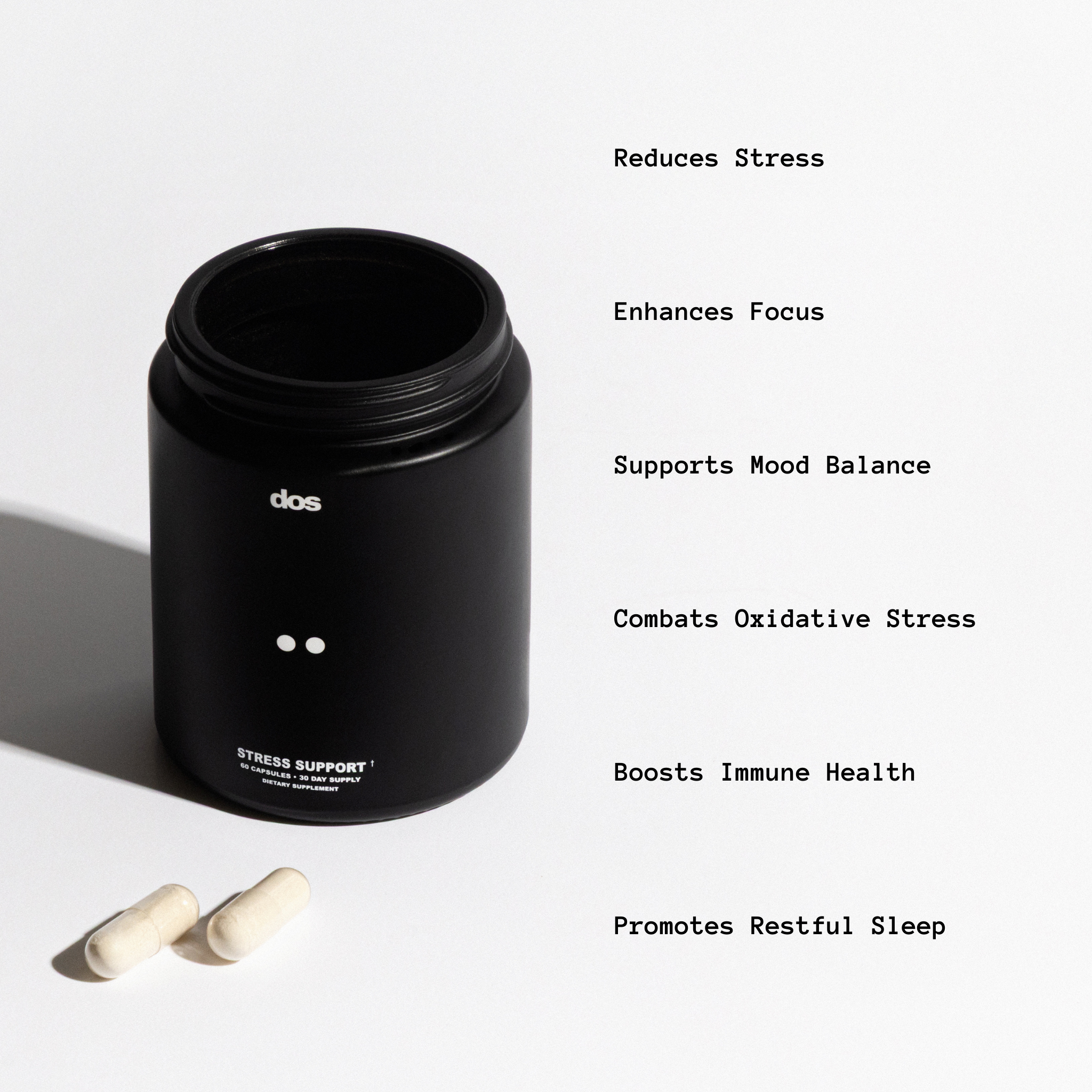 dos is a daily stress support supplement designed to keep you calm, focused, and mentally clear. Made with powerful adaptogens and essential vitamins, dos helps you manage stress without feeling sluggish or overstimulated.